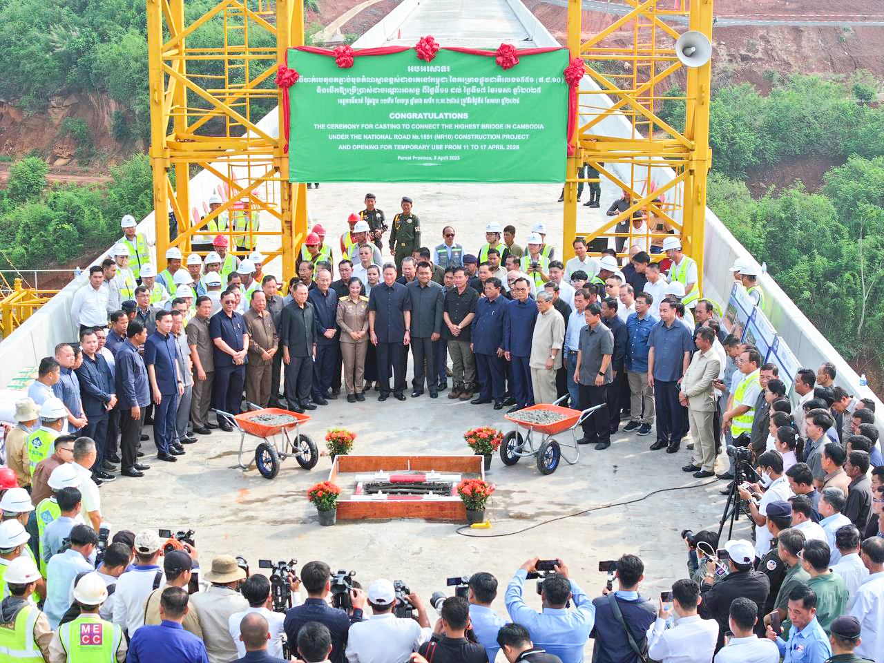 ពិធីចាក់បេតុងតភ្ជាប់មុខតំណស្ពានខ្ពស់ជាងគេនៅកម្ពុជា នៃគម្រោងផ្លូវជាតិលេខ១០ ក្រោមអធិបតីភាព លោក ស៊ុន ចាន់ថុល ឧបនាយករដ្ឋមន្ត្រី អនុប្រធានទី១ ក្រុមប្រឹក្សាអភិវឌ្ឍន៍កម្ពុជា នាព្រឹកថ្ងៃអង្គារ ទី៨ ខែមេសា ឆ្នាំ២០២៥។