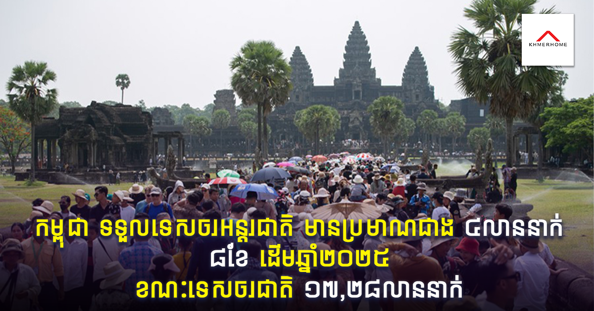 ភ្នំពេញ៖ គិតត្រឹម ៨ខែ ដើមឆ្នាំ២០២៥ កម្ពុជាទទួលបានទេសចរអន្តរជាតិប្រមាណជាង ៤លាននាក់ ស្របពេលទេសចរជាតិមានចំនួន ១៧,២៨លាននាក់ កើនឡើងជិត ៥៣% ធៀបនឹងរយៈពេលដូចគ្នា ឆ្នាំ២០២៤។ បើតាមរយៈសារលិខិតអបអរសាទរទិវាទេសចរណ៍ពិភពលោក ឆ្នាំ២០២៥ ក្រោមប្រធាន «ទេសចរណ៍ និងបរិវត្តកម្មប្រកបដោយចីរភាព» សម្ដេចមហាបវរធិបតី ហ៊ុន ម៉ាណែត នាយករដ្ឋមន្ដ្រីនៃកម្ពុជា។