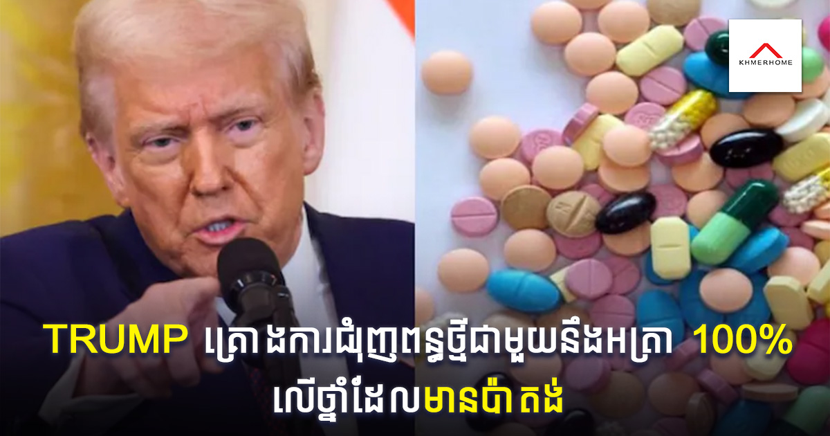 អន្តរជាតិ៖ ប្រធានាធិបតី Donald Trump បានប្រកាសជុំថ្មីនៃពន្ធលើឱសថ ឡានដឹកទំនិញធុនធ្ងន់ និងគ្រឿងសង្ហារឹម រួមទាំងពន្ធ 100% លើថ្នាំដែលមានប៉ាតង់ លុះត្រាតែអ្នកផលិតកំពុងសាងសង់រោងចក្រផលិតនៅសហរដ្ឋអាមេរិក។