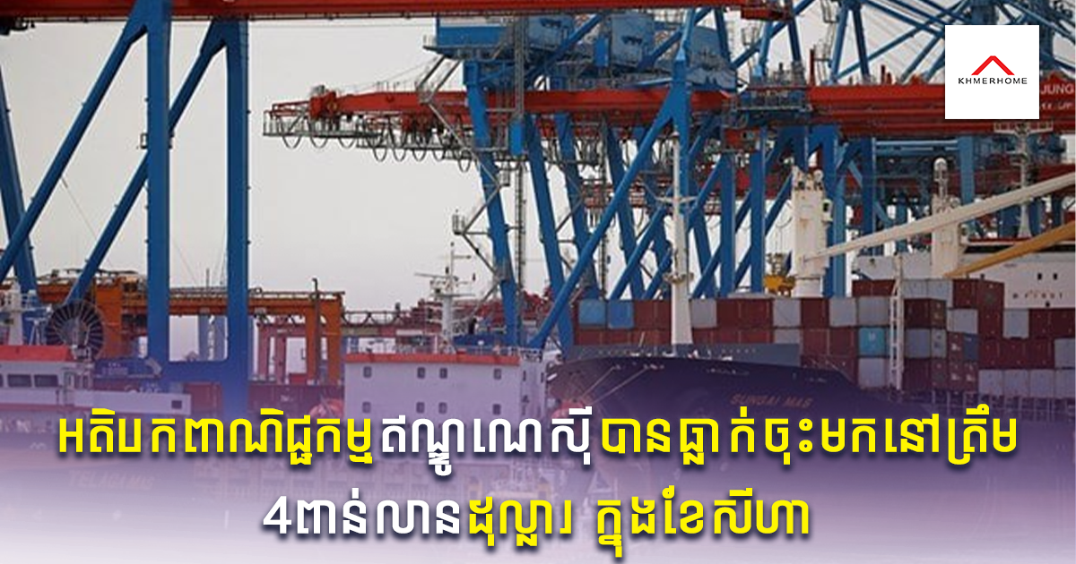 អន្តរជាតិ៖ ការស្ទង់មតិរបស់ Reuters បានបង្ហាញកាលពីថ្ងៃអង្គារថា អតិរេកពាណិជ្ជកម្មរបស់ឥណ្ឌូនេស៊ីទំនងជាបានរួមតូចមកត្រឹម ៤ពាន់លានដុល្លារក្នុងខែសីហា ដោយសារការនាំចេញបានធ្លាក់ចុះ ខណៈដែលការនាំចូលនៅតែធ្លាក់ចុះ។
