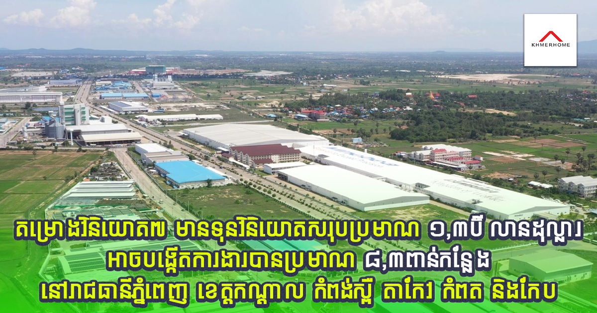 ភ្នំពេញ៖ គម្រោងវិនិយោគចំនួន៧ មានទុនវិនិយោគសរុបប្រមាណ ១,៣ប៊ីលានដុល្លារ អាចបង្កើតការងារបានប្រមាណ ៨,៣ពាន់កន្លែង នៅរាជធានីភ្នំពេញ ខេត្តកណ្តាល កំពង់ស្ពឺ តាកែវ កំពត និងកែប។