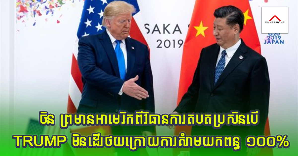 អន្តរជាតិ៖ ទីក្រុងប៉េកាំង បានប្តេជ្ញាថានឹងចាត់វិធានការប្រឆាំងនឹងទីក្រុងវ៉ាស៊ីនតោន ប្រសិនបើប្រធានាធិបតីអាមេរិកលោក Donald Trump ធ្វើបានល្អលើការគំរាមកំហែងរបស់លោកក្នុងការដាក់ពន្ធថ្មី 100% លើការនាំចូលរបស់ចិន។