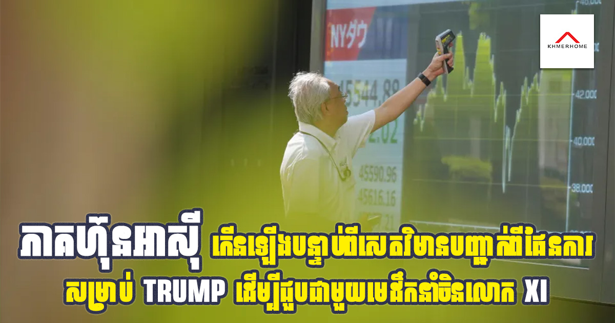 អន្តរជាតិ៖ ភាគហ៊ុនអាស៊ីភាគច្រើនឡើងខ្ពស់នៅថ្ងៃសុក្រ បន្ទាប់ពីសេតវិមានបានបញ្ជាក់ពីផែនការសម្រាប់ប្រធានាធិបតី Donald Trump ដើម្បីជួបជាមួយមេដឹកនាំចិន Xi Jinping នៅសប្តាហ៍ក្រោយ។