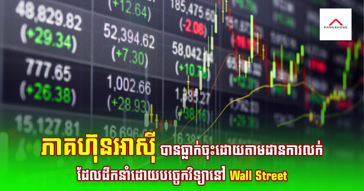 អន្តរជាតិ៖ ភាគហ៊ុនអាស៊ីបានធ្លាក់ចុះកាលពីថ្ងៃអង្គារ ជាមួយនឹងតម្លៃគោលនៅទីក្រុងតូក្យូ និងសេអ៊ូលបានធ្លាក់ចុះជាង 3% បន្ទាប់ពី ក្រុមហ៊ុន Nvidia និង ភាគហ៊ុនដែលទាក់ទងនឹង បញ្ញាសិប្បនិម្មិត ផ្សេងទៀត បានទាញភាគហ៊ុនអាមេរិកធ្លាក់ចុះ។