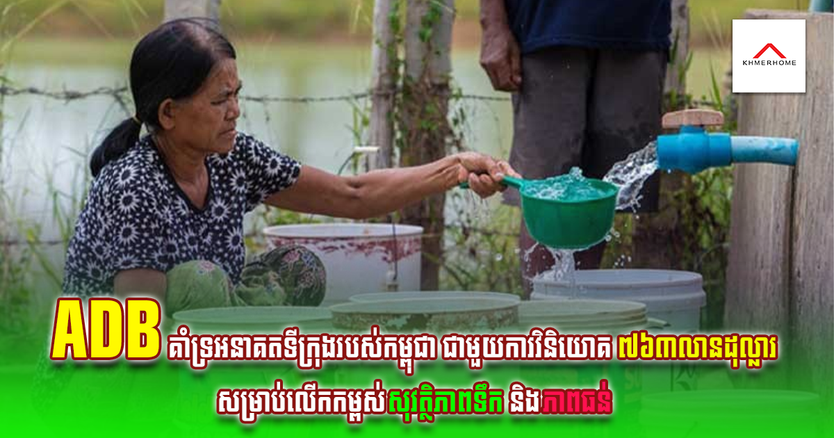 ភ្នំពេញ៖ ធនាគារអភិវឌ្ឍន៍អាស៊ី (ADB) បានអនុម័តកម្មវិធីវិនិយោគចំនួន ៧៦៣លានដុល្លារ ក្នុងនោះរួមមានជំនួយឥតសំណងចំនួន ២០លានដុល្លារ ពីមូលនិធិអភិវឌ្ឍន៍អាស៊ី (ADF) ដើម្បីគាំទ្រកម្ពុជា ពង្រីកលទ្ធភាពទទួលបានការផ្គត់ផ្គង់ទឹកស្អាតនិងអនាម័យ ពង្រឹងសន្តិសុខទឹក និងលើកកម្ពស់ភាពធន់និងភាពសមស្របសម្រាប់រស់នៅនៃទីក្រុងរបស់ប្រទេស។
