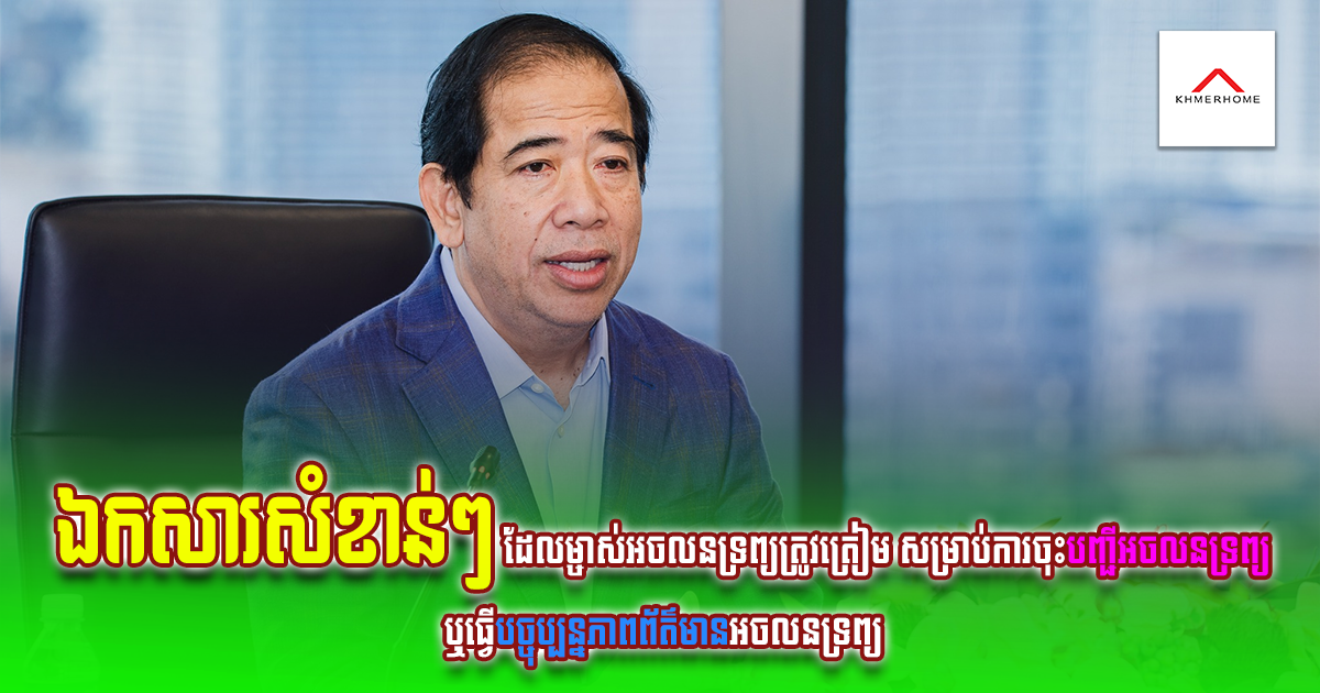 ភ្នំពេញ៖ ឯកសារសំខាន់ៗដែលម្ចាស់អចលនទ្រព្យត្រូវត្រៀម សម្រាប់ការចុះបញ្ជីអចលនទ្រព្យ ឬធ្វើបច្ចុប្បន្នភាពព័ត៌មានអចលនទ្រព្យ។