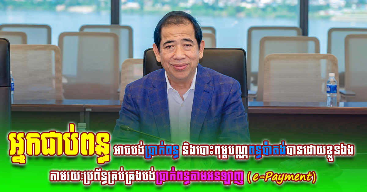 ភ្នំពេញ៖ អ្នកជាប់ពន្ធអាចបង់ប្រាក់ពន្ធ និងបោះពុម្ពបណ្ណពន្ធប៉ាតង់បានដោយខ្លួនឯង តាមរយៈប្រព័ន្ធគ្រប់គ្រងបង់ប្រាក់ពន្ធតាមអនឡាញ (e-Payment)។