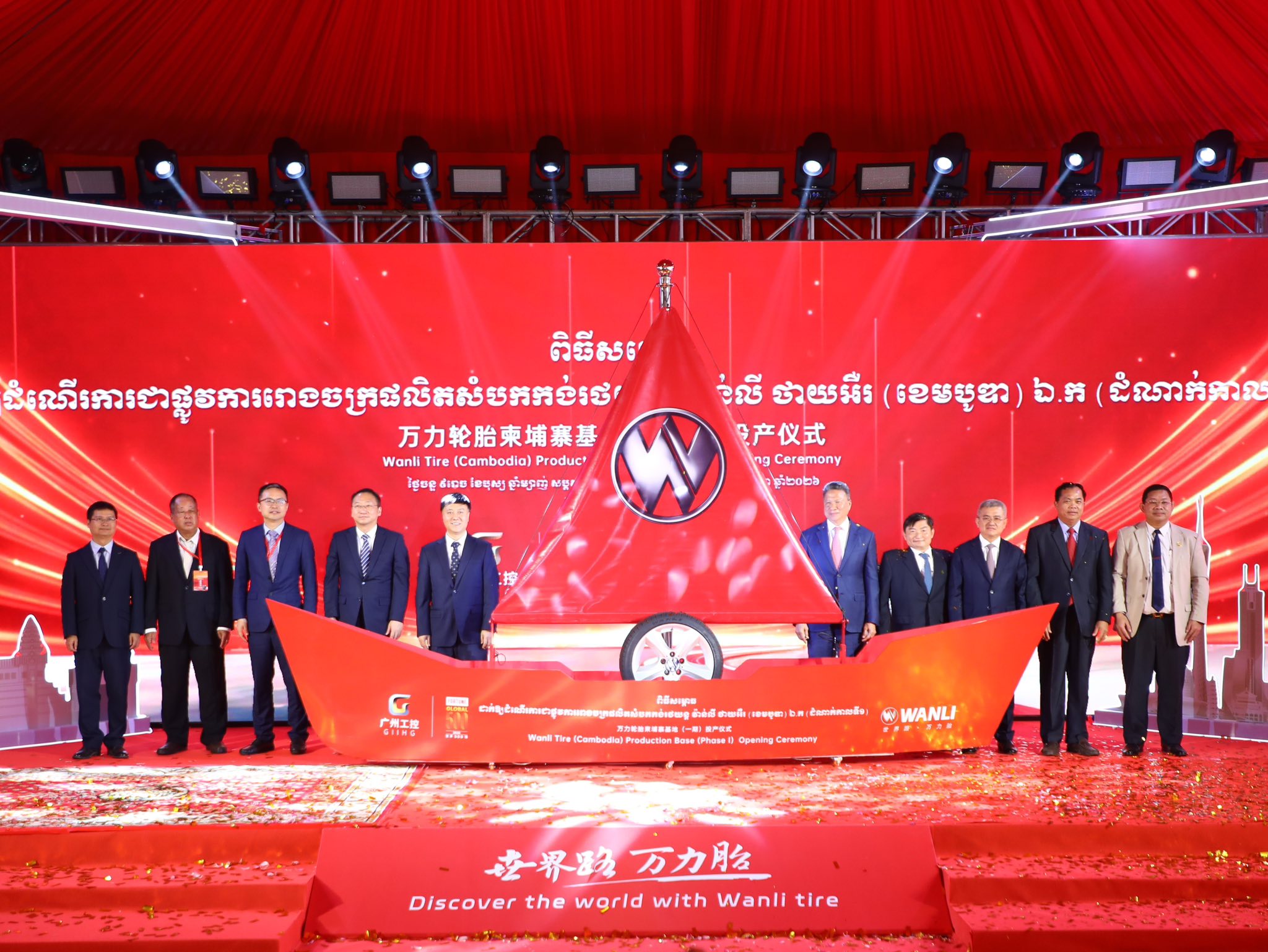 ស្វាយរៀង៖ កម្ពុជា បានដាក់ឱ្យដំណើរការជាផ្លូវការ ដំណាក់កាលទី១ នៃរោងចក្រផលិតសំបកកង់រថយន្ត Wanli Tire (Cambodia) នៅតំបន់សេដ្ឋកិច្ចពិសេសស៊ីនបាវិត ខេត្តស្វាយរៀង ដែលជាគម្រោងវិនិយោគឧស្សាហកម្មធុនធ្ងន់ដ៏សំខាន់មួយ ក្នុងការពង្រីកមូលដ្ឋានផលិតកម្មរបស់ក្រុមហ៊ុនទៅក្រៅប្រទេស។