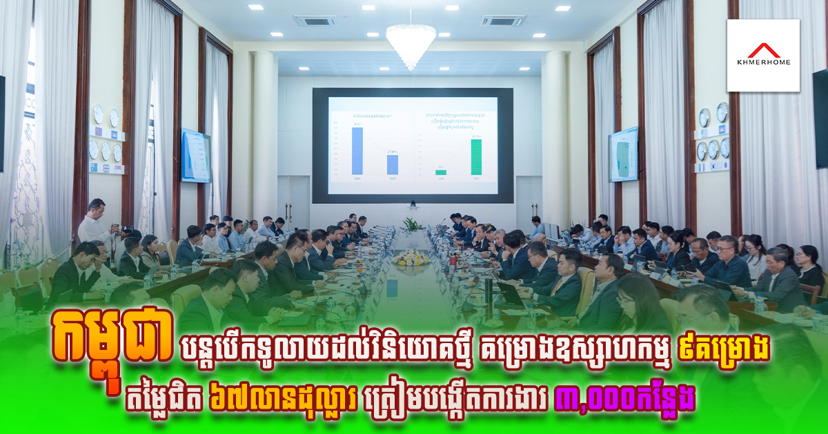 ភ្នំពេញ៖ កម្ពុជាបន្តបង្ហាញភាពសកម្មក្នុងការទាក់ទាញវិនិយោគឯកជន តាមរយៈការរៀបចំ “កិច្ចប្រជុំច្រកចេញ-ចូលតែមួយ” លើកទី១ ក្នុងឆ្នាំ២០២៦ ដើម្បីពិនិត្យ និងពិភាក្សាលើសំណើសុំចុះបញ្ជីគម្រោងវិនិយោគមានលក្ខណៈសម្បត្តិគ្រប់គ្រាន់ចំនួន ៩គម្រោង ដែលស្ថិតនៅក្រៅតំបន់សេដ្ឋកិច្ចពិសេស។