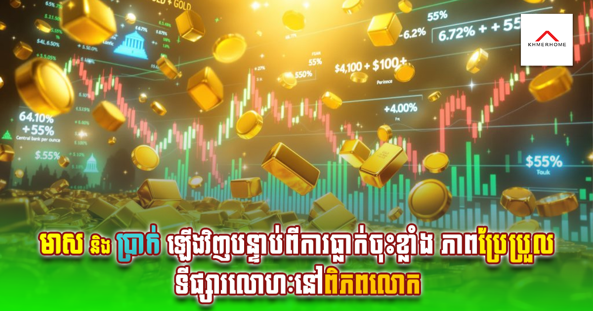 ភ្នំពេញ៖ មាស និងប្រាក់បានកើនឡើងយ៉ាងខ្លាំង បន្ទាប់ពីការធ្លាក់ចុះដ៏ឆាប់រហ័សរយៈពេលពីរថ្ងៃ។ តម្លៃមាសឡើង ៤,២% ទៅ 4,855ដុល្លារក្នុងមួយអោនស៍ បន្ទាប់ពីធ្លាក់ចុះ ៤,៨% នៅមុននេះ ខណៈដែលប្រាក់ឡើង ៨,១% ទៅ ៨៥ដុល្លារ។