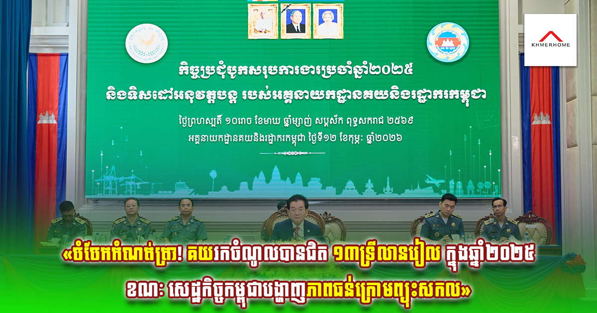 យោងតាមរបាយការណ៍ចុងក្រោយពីកិច្ចប្រជុំបូកសរុបការងារប្រចាំឆ្នាំ កាលពីព្រឹកថ្ងៃទី១២ ខែកុម្ភៈ ឆ្នាំ២០២៦ អគ្គនាយកដ្ឋានគយនិងរដ្ឋាករកម្ពុជា (GDCE) បានប្រកាសពីជោគជ័យដ៏ធំធេងក្នុងការប្រមូលចំណូលពន្ធជូនរដ្ឋ ដែលលើសពីផែនការរហូតដល់ជិត ២៥%។