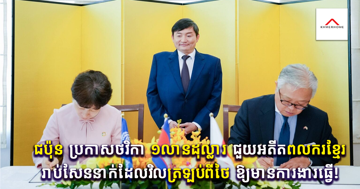ភ្នំពេញ៖ ក្រោយពេលមានការប៉ះទង្គិចព្រំដែន ដែលបង្ខំឱ្យពលករខ្មែរជាង ៩៥ម៉ឺននាក់ ត្រឡប់មកពីថៃវិញ រដ្ឋាភិបាលជប៉ុនបានដាក់ដៃជួយភ្លាមៗ! ថវិកាជិត ១លានដុល្លារ (ប្រហែល ១៥៦លានយ៉េន) ត្រូវបានផ្តល់ជូនតាមរយៈអង្គការពលកម្មអន្តរជាតិ (ILO) ដើម្បីបើកវគ្គបណ្តុះបណ្តាលជំនាញ និងបង្កើតការងារជូនបងប្អូនដែលកំពុងជួបការលំបាក។