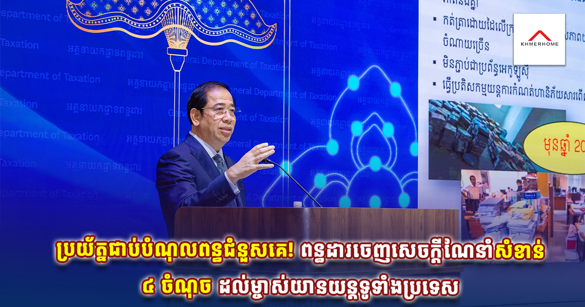 ភ្នំពេញ – អគ្គនាយកដ្ឋានពន្ធដារបានសង្កេតឃើញមានការលើកឡើងជាច្រើនពីសំណាក់ម្ចាស់យានយន្ត ទាក់ទងនឹងការចេញលិខិតជូនដំណឹងខកខានមិនបានបង់ពន្ធលើមធ្យោបាយដឹកជញ្ជូន (ពន្ធផ្លូវ) ដែលប៉ះចំលើបុគ្គលដែលមិនមែនជាម្ចាស់បច្ចុប្បន្ន។ ដើម្បីដោះស្រាយបញ្ហានេះ អគ្គនាយកដ្ឋានពន្ធដារសូមស្នើដល់ម្ចាស់យានយន្ត និងអ្នកតំណាងទាំងអស់ ចូលរួមសហការធ្វើបច្ចុប្បន្នភាពទិន្នន័យជាបន្ទាន់។