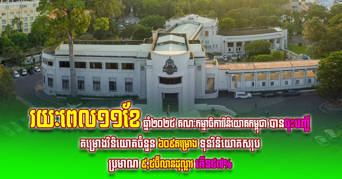 ក្រុមប្រឹក្សាអភិវឌ្ឍន៍កម្ពុជា បានចុះបញ្ជីគម្រោងវិនិយោគ៦០៩ ទុនវិនិយោគ ៩,៥ប៊ីលានដុល្លារ កើន៥៧%