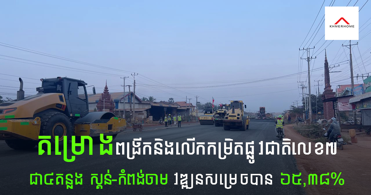 គម្រោងពង្រីកនិងលើកកម្រិតផ្លូវជាតិលេខ៧ ជា៤គន្លង ស្គន់-កំពង់ចាម វឌ្ឍនសម្រេចបាន ៦៥,៣៨%