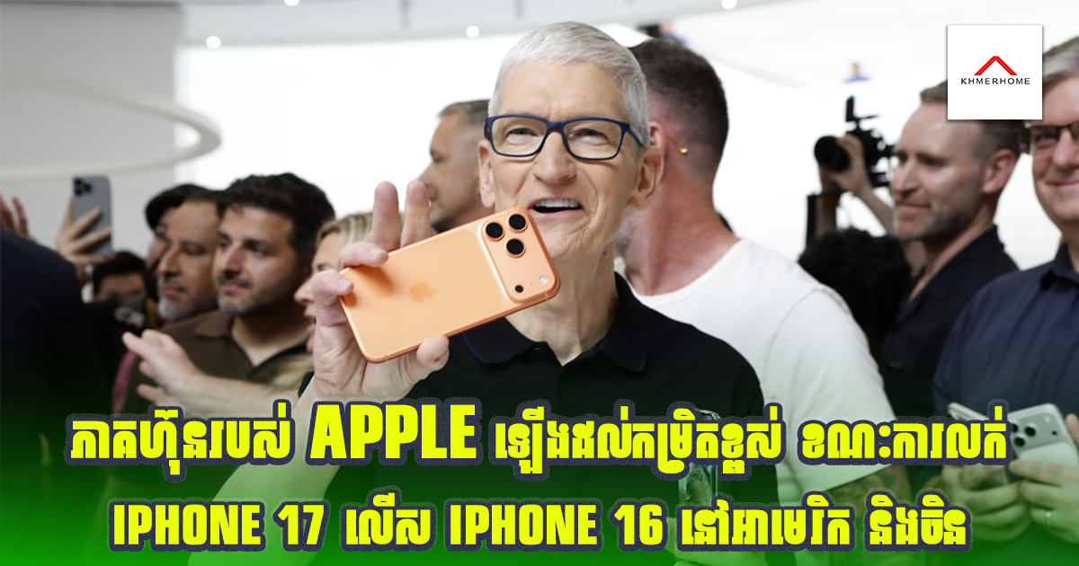 ភាគហ៊ុន Apple ឡើងដល់កម្រិតខ្ពស់ ខណៈការលក់ iPhone 17 លើស iPhone 16 នៅអាមេរិក និងចិន
