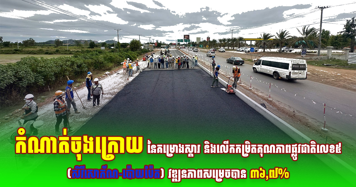 កំណាត់ចុងក្រោយ នៃគម្រោងស្តារ និងលើកកម្រិតគុណភាពផ្លូវជាតិលេខ៥ វឌ្ឍនភាពសម្រេចបាន ៣៦,៧% ហើយ