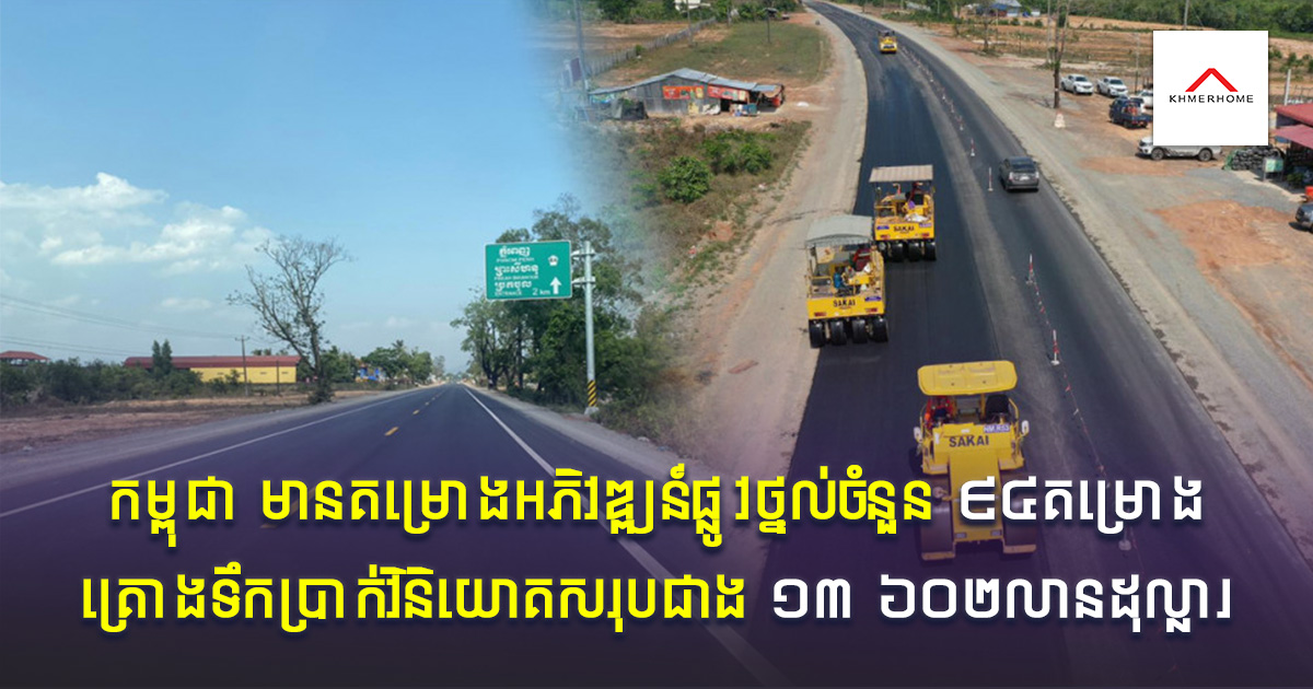 កម្ពុជា មានគម្រោងអភិវឌ្ឍន៍ផ្លូវថ្នល់ចំនួន ៩៤គម្រោង គ្រោងទឹកប្រាក់វិនិយោគសរុបជាង ១៣ ៦០២លានដុល្លារ