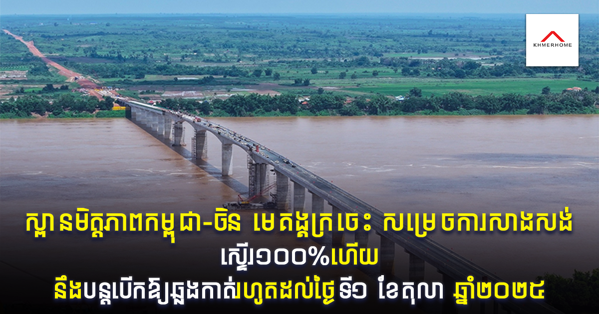 ស្ពានមិត្តភាពកម្ពុជា-ចិន មេគង្គក្រចេះ សម្រេចការសាងសង់ស្ទើរ ១០០% បន្តបើកឱ្យឆ្លងកាត់ដល់ថ្ងៃទី១ ខែតុលា