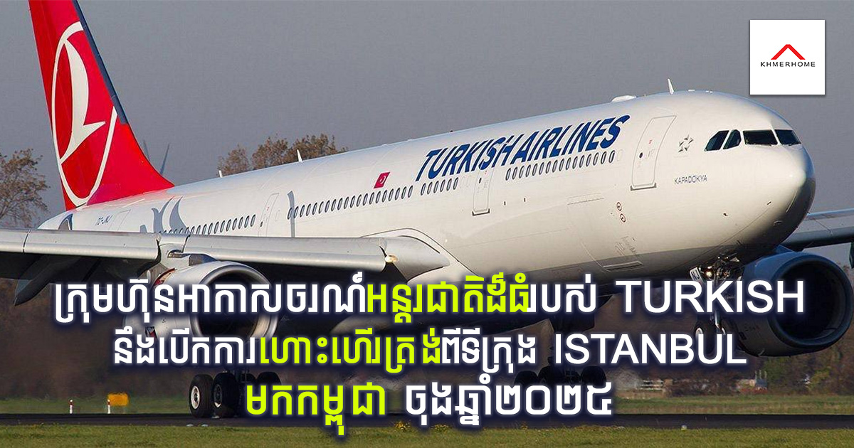 ក្រុមហ៊ុនអាកាសចរណ៍អន្តរជាតិដ៏ធំ Turkish នឹងបើកការហោះហើរត្រង់ មកអាកាសយានដ្ឋានអន្តរជាតិតេជោ