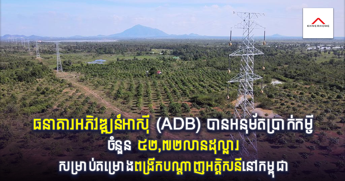 ធនាគារអភិវឌ្ឍន៍អាស៊ី ផ្ដល់កម្ចីចំនួន ៥២,៧២លានដុល្លារសម្រាប់គម្រោងពង្រីកបណ្តាញអគ្គិសនីនៅកម្ពុជា
