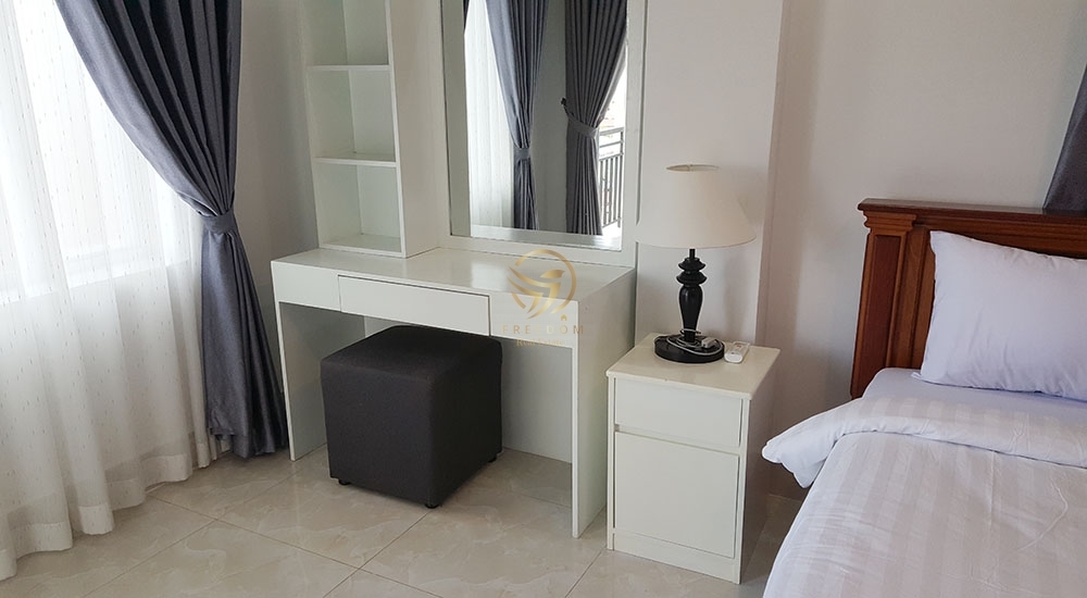 This apartment is located middle town of Phnom Penh City, where surrounding by International school, super market, mart, restaurant, fitness, local market, shop,cafe...etc. It is very suitable for residence with fresh air environment. Especially, House owner are friendly and always take care people who loving there with a warming and quickly maintenance service.