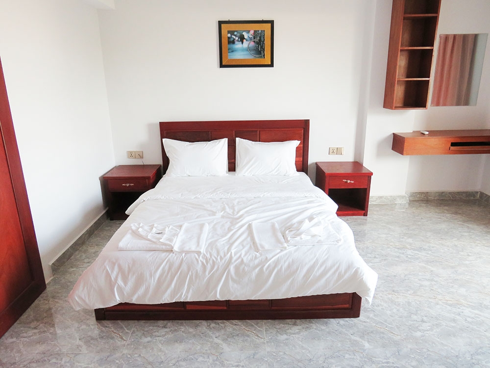 Newly completed serviced apartment featuring one bedroom and one bathroom. Fully furnished and equipped with modern appliances. Highly organized and well thought-out interior design with smart use of space and storage. A beautiful rooftop terrace offers good views, sunset views of the city and Sky Bar on top floor. Especailly have Brand Coffee Shop and Restaurant on ground floor, close to Mart, Market, Shop. Just 13 min drive from France Embassy and Bristish Embassy, 10 min from TK Avenue and Bayon Super Market. Additional features include parking for motorcycles, and 24-hour security.Rental Price for 1bedroom from 280$-350$, 2bedroom from 400$ Up.