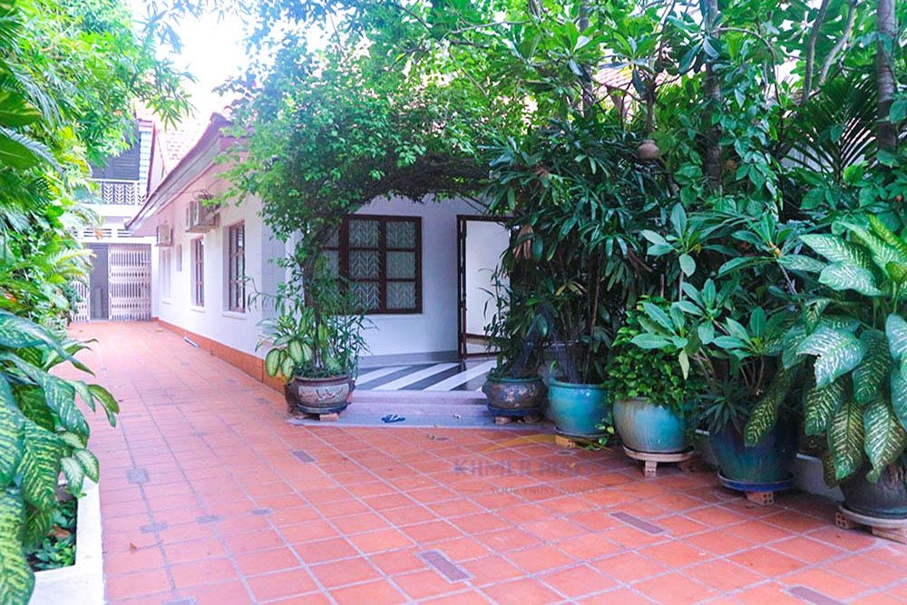 Villa for rent at Tonle Bassac which located in spacial and quiet areas, It close to school, shop and restaurant. Comfortable for living big family, or we can make office space for work also.