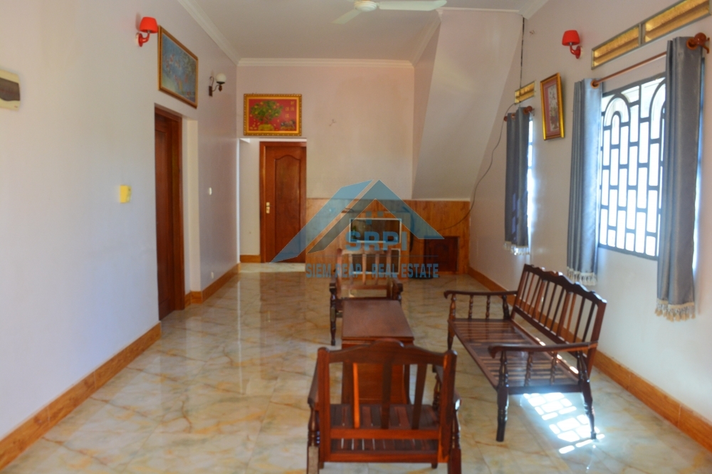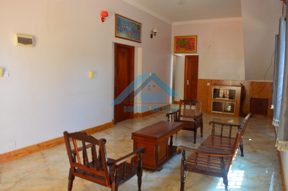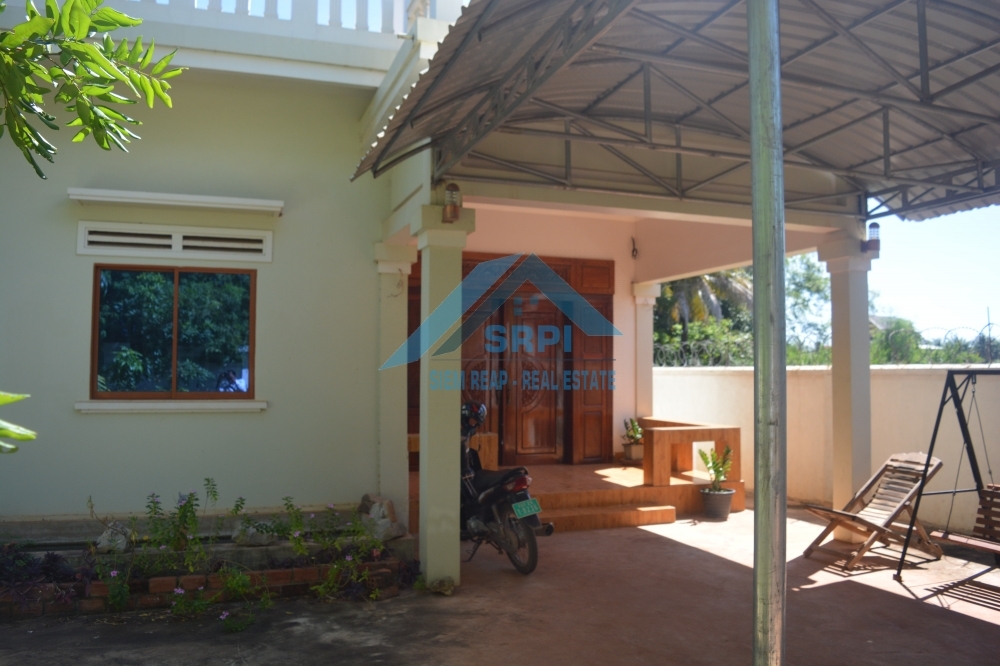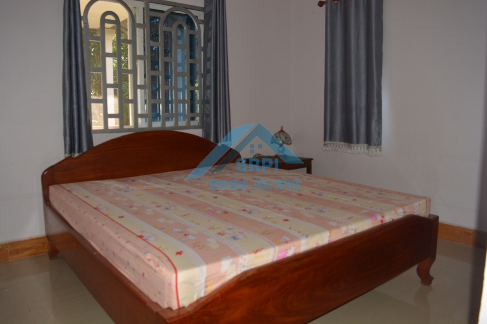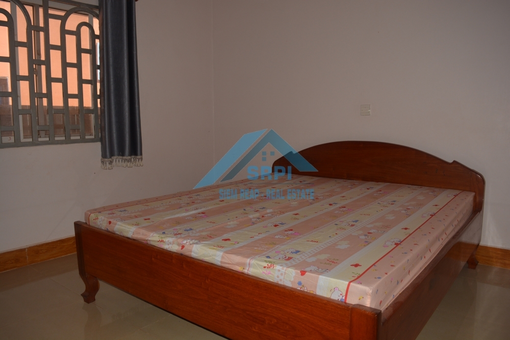 Introducing to well-appointed 4 – bedroom house for rent location in Sala Komreuk Commune, Siem Reap Town, Cambodia. This property provides a semi-furnished, a greenish garden and a parking area. Every bedroom is en-suite and equipped with air-conditioned(N/A), bedside table and an en-suite bathroom with hot water(N/A). In addition, the fabulous living room provides comfortable wooden sofa set with an extra fan. The kitchen is big and comes completely with an ample space for cooking with a big refrigerator (N/A), gas stove set, gas tank and dining table set. The surrounding environment is secured and the road condition is good. Drop us a message to schedule the time to visit this lovely house.