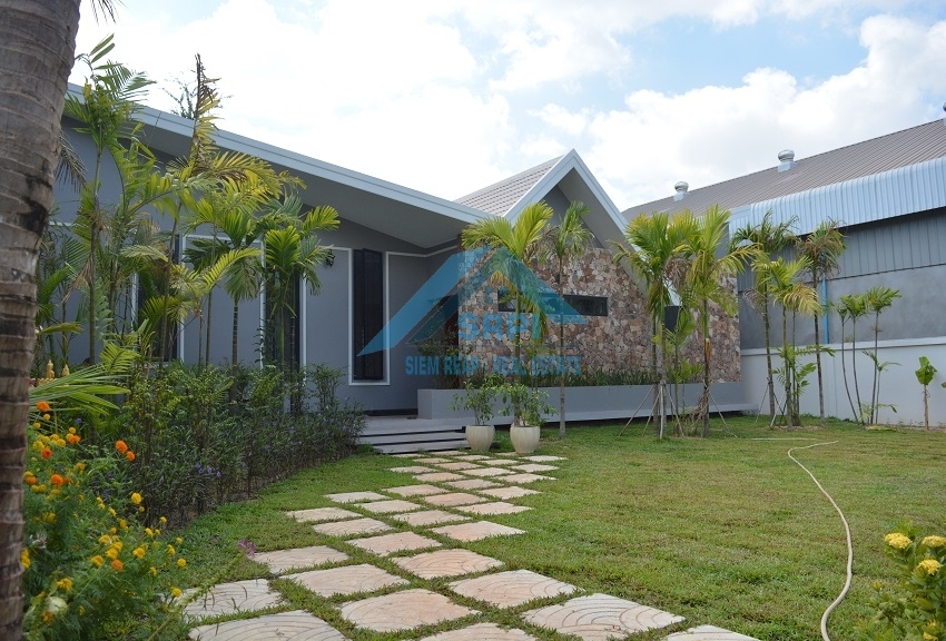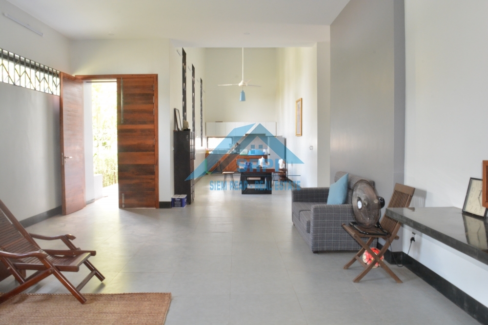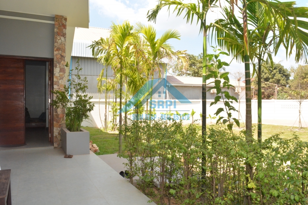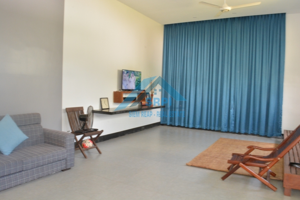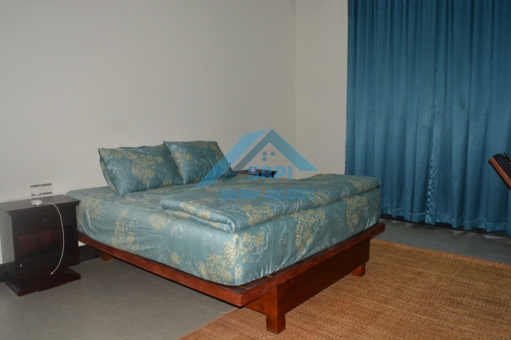 Introducing to European style 2 – bedroom villa for rental/sale location in Sangkat Chreav, Siem Reap Town, Cambodia. The property provides with high quality fully furnished, a large greenish garden and a specious secured parking area. Every bedroom is en-suite and equipped with A/C, fitted wardrobe, dressing room, bedside table and an en-suite bathroom with hot water. In addition, the beautiful living room provides comfortable wooden sofa set with cousin, laying wooden bed, beautiful TV table with flat screen television and extra fan. The fabulous kitchen comes completely with refrigerator, washing machine, gas stove set and gas tank and dining table set. The surrounding environment is secured and the road condition is good. This is the must seen property. Drop us a message to schedule the time to visit this lovely villa.