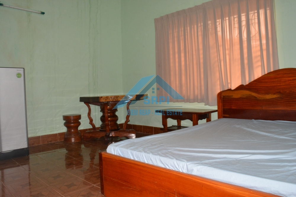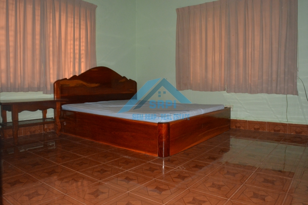 Introducing to an affordable 4 – bedroom house becomes available for lease is well located in Svay Dangkum Commune, Siem Reap Town, Cambodia. The property provides with partially furnished, a spacious garden and a secured parking area. The bedroom is en-suite and equipped with A/C, fitted wardrobe and an en-suite bathroom with hot water. In addition, the living room provides a wooden sofa set and an extra ceiling fan. The kitchen comes completely with refrigerator [Nego], gas stove set and gas tank and dining table set. The surrounding environment is secured and the road condition is OKAY. This is the must see property. Call or send us a message to schedule the time to visit this affordable HOUSE.