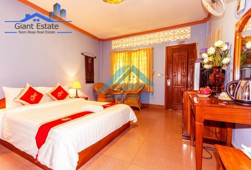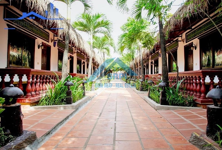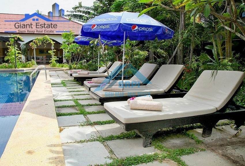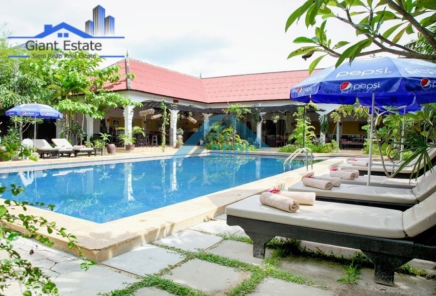 Introducing to a potential and affordable 36 – bedroom boutique hotel, turn key 100% for high this high season for lease and sale location in Sangkat Slor Kram, Seim Reap Town, Cambodia. This property provides with outdoor swimming pool, greenish garden and a parking space. It has three main categories include single bedroom, double bedroom, and twin room. Each bedroom is suite equipped with air-conditioned, a fitted wardrobe, a bedside table, mini refrigerator, working table, safety box, a TV and an en-suite bathroom with hot water. The fabulous receptionist area provides completely furnished with receptionist desk and sofa set and an office space. Offering the perfect pool side view connected to the restaurant and bar for guests to enjoy the fresh air during the meal time. The surrounding environment is secured and the road condition is good. This is the must see property. Drop us a message to schedule the time to visit this affordable boutique.