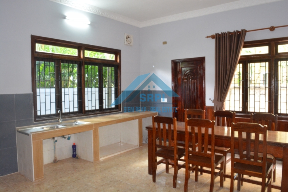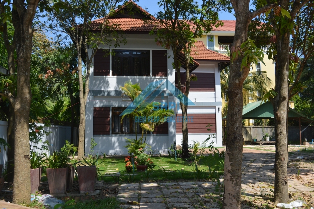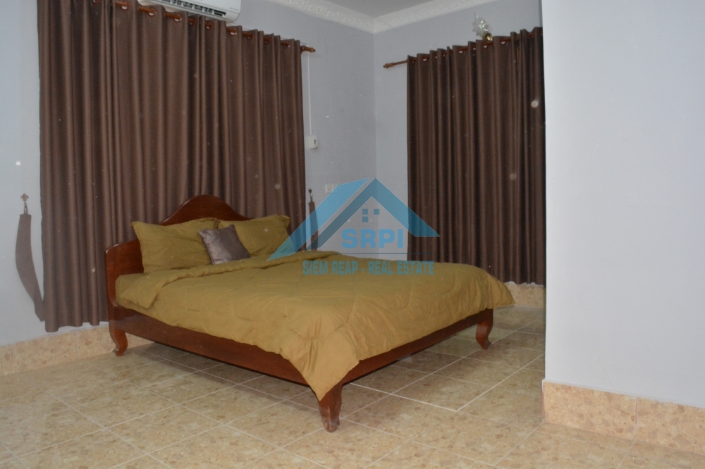 Introducing to a classical 4– bedroom house for rent location in Sangkat Slor Kram, Siem Reap Town, Cambodia. This property provides with high quality fully furnished, lovely garden and a large secured parking area. Every bedroom is en-suite and equipped with air-conditioned, fitted wardrobe, bedside table and an en-suite bathroom with hot water. Moreover, The living room provides comfortable sofa set with an extra ceiling fan and flat screen TV. Other benefit is the kitchen comes completely with an ample space for cooking, a big refrigerator, gas stove set, gas tank and dining table set. The surrounding environment is secured and the road condition is good. This is the must see property. Call or send us a message to schedule the time to visit this lovely HOUSE.