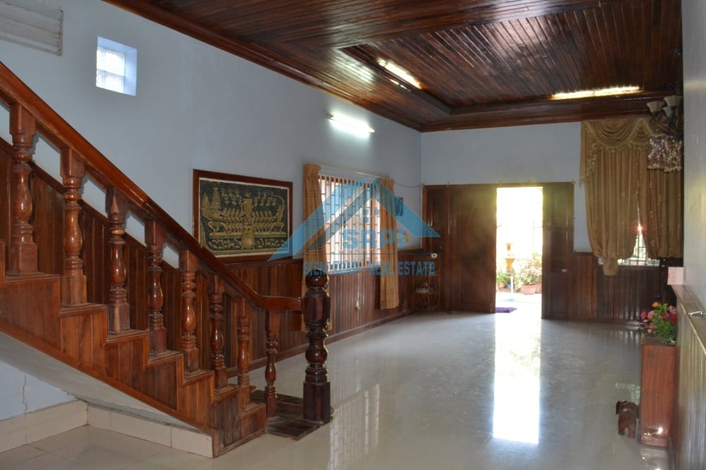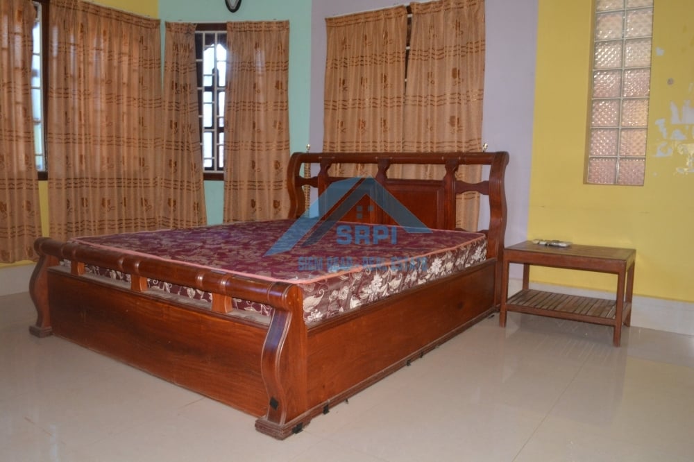 Introducing to great location 5 – bedroom villa for rent location in Sangkat Sala Komreuk, Siem Reap Town, Cambodia. This property provides with high quality fully furnished, one additional storage, spacious tropical garden and a large secured garage. The bedroom is en-suite and equipped with air-conditioned, fitted wardrobe, bedside table and an en-suite bathroom with hot water. Moreover, the living room provides comfortable wooden sofa set with an extra ceiling fan and flat screen TV. Other benefit is the kitchen comes completely with an ample space for cooking, a big refrigerator, gas stove set, gas tank and dining table set. The surrounding environment is secured and the road condition is good. This is the must see property. Call or send us a message to schedule the time to visit this lovely VILLA.