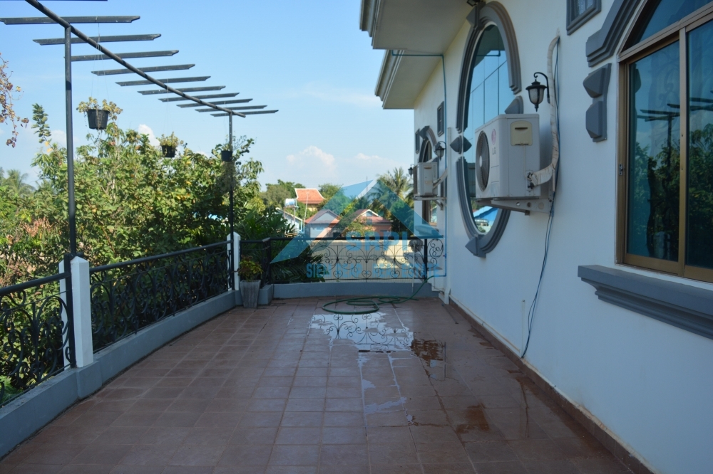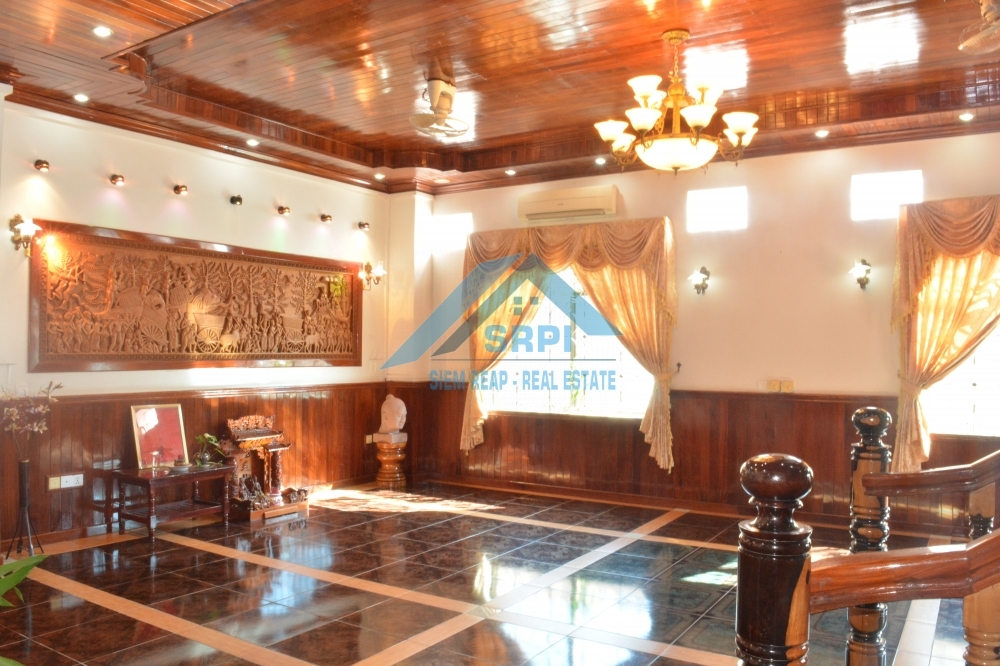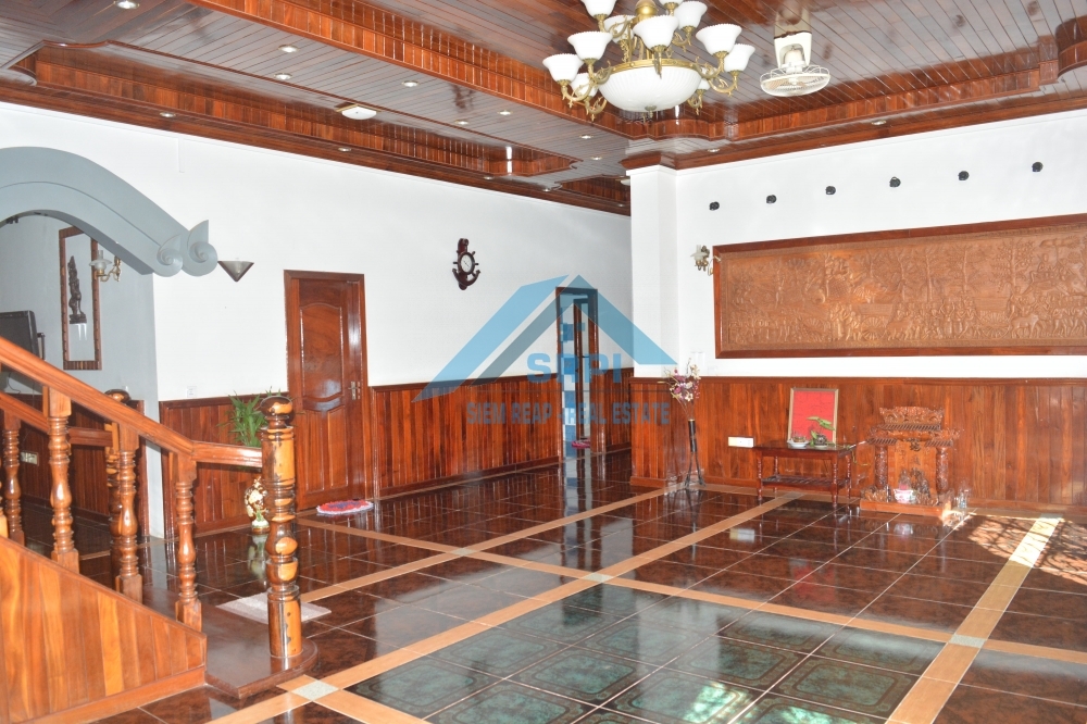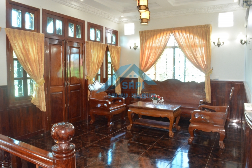 Introducing to marvelous and superb 7 – bedroom villa for lease location in Sangkat Sala Komreuk, Siem Reap Town, Cambodia. This property provides with high quality fully furnished, one additional storage, spacious tropical garden and a large secured garage. Each bedroom is en-suite and equipped with air-conditioned, fitted wardrobe, bedside table and an en-suite bathroom with hot water and bathtub. Moreover, the living room provides comfortable wooden sofa set with an extra ceiling fan and flat screen TV. Other benefit is the kitchen comes completely with an ample space for cooking, a big refrigerator, gas stove set, gas tank and dining table set. The surrounding environment is secured and the road condition is good. This is the must see property. Call or send us a message to schedule the time to visit this lovely VILLA.