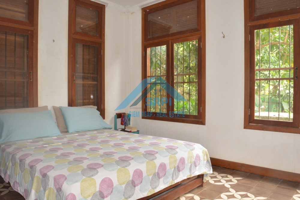 Introducing to an affordable 3 – bedroom house for lease is best situated in Sangkat Svay Dangkum, Siem Reap Town, Cambodia. This property provides with partially furnished, greenish garden and a large secured space. The bedroom is en-suite and equipped with air-conditioned, fitted wardrobe, bedside table and the bathroom is comes with hot water. Moreover, The living room provides comfortable wooden sofa set with an extra ceiling fan. The kitchen comes completely with an ample space for cooking, a refrigerator, gas stove set, gas tank and dining table set. The surrounding environment is secured and the road condition is OKAY. This is the must see property. Call or send us a message to schedule the time to visit this HOUSE.