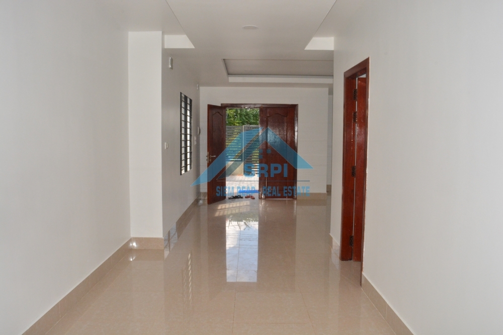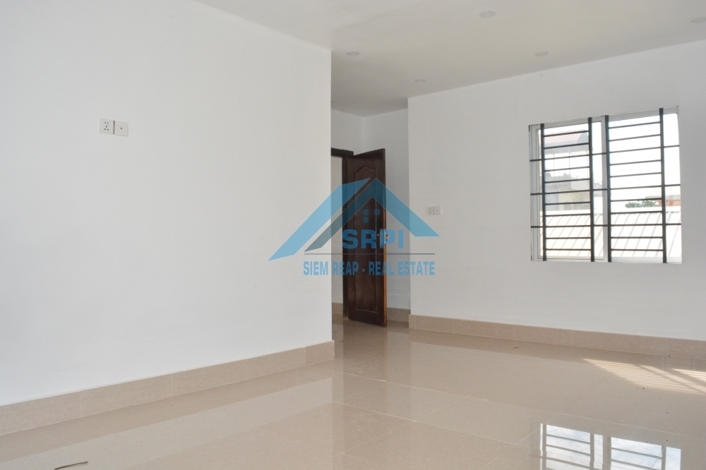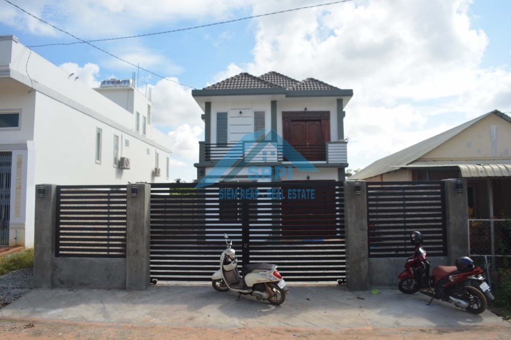 We would like to illustrate you a brand new 3 – bedroom villa for rental location in Sangkat Sala Komreuk, Siem Reap Town, Cambodia. This property provides with high quality fully furnished, and a large secured parking space. Every bedroom is en-suite and equipped with air-conditioned, fitted wardrobe, bedside table and an en-suite bathroom with hot water. In addition, the living room provides comfortable sofa set with an extra ceiling fan and flat screen TV. The kitchen comes complete with an ample space for cooking, a big refrigerator, gas stove set, gas tank and dining table set. The surrounding environment is secured and the road condition is good. This is the must see property. Call or send us a message to schedule the time to visit this lovely VILLA