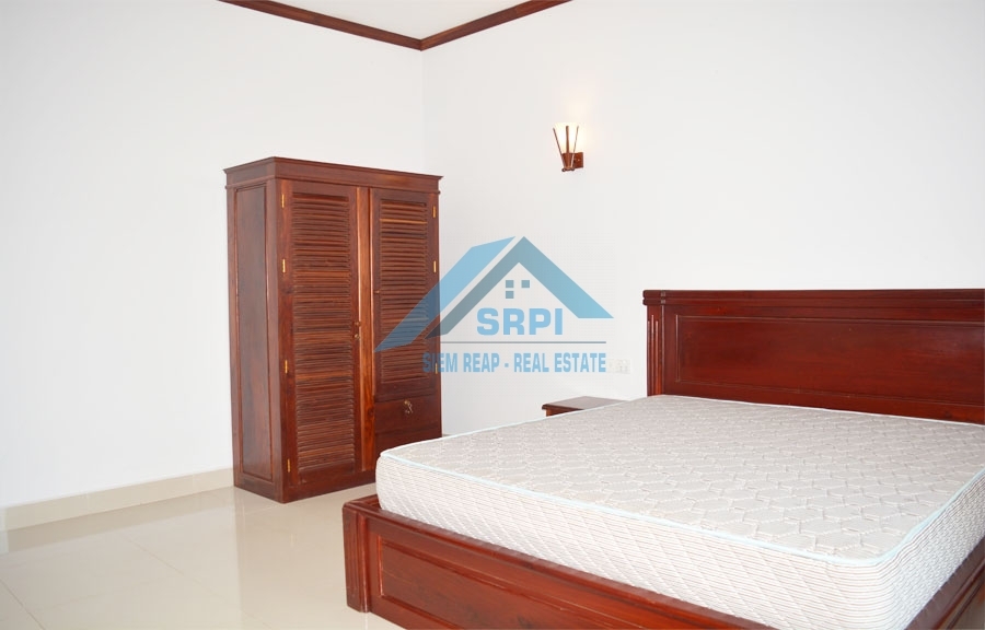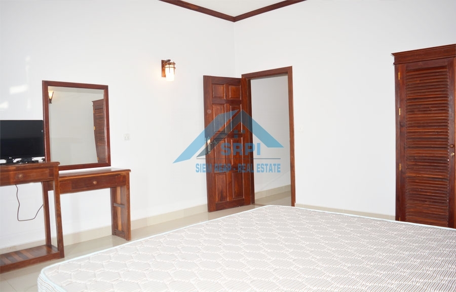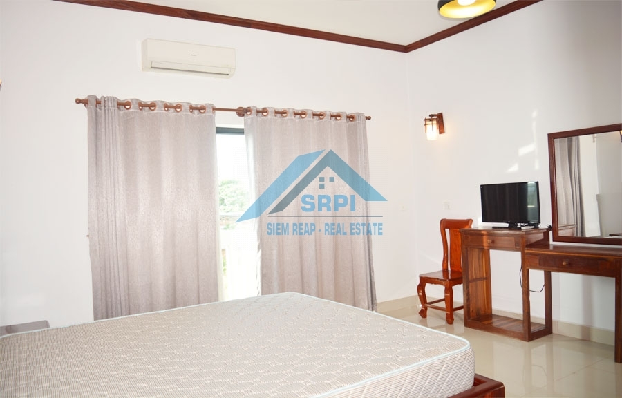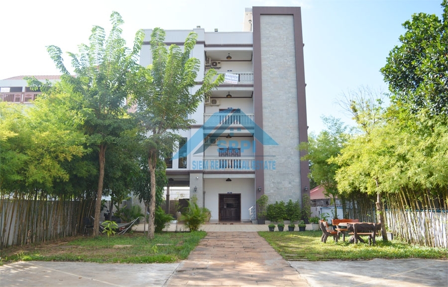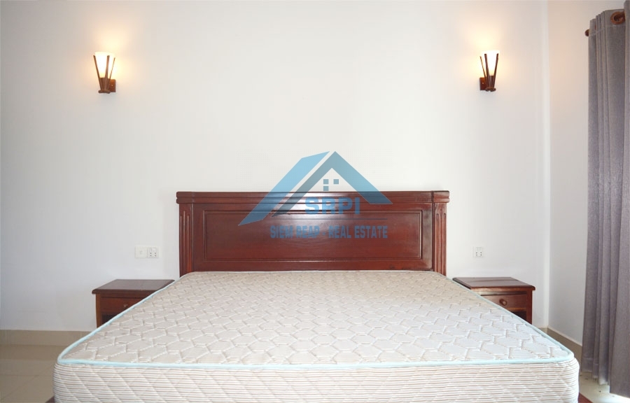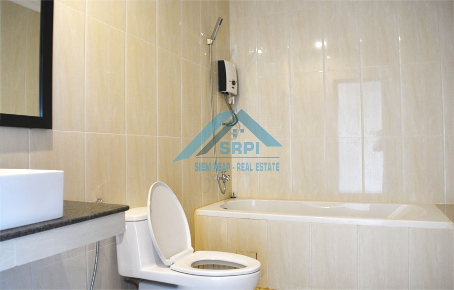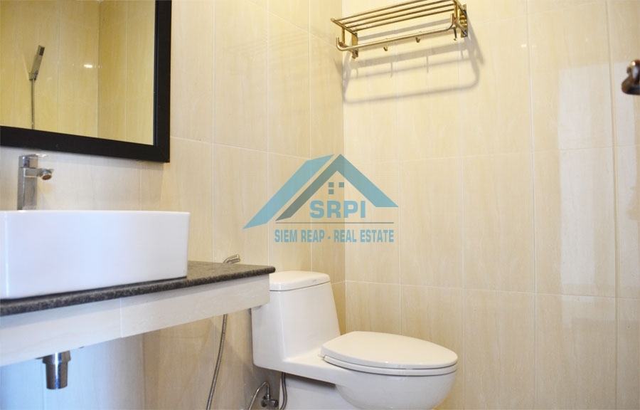This is marvelous 12 – bedroom apartment block becomes available for rent location in Sangkat Svay Dangkum, Seim Reap Town, Cambodia. This beautiful property provides with high quality fully furnished, stunning swimming pool, leafy tropical garden and parking space. There are 04 units of 1 – Bedroom and 4 units of 2 – bedroom. Every bedroom is suite and equipped with a fitted wardrobe, a bedside table, flat screen TV and an en-suite bathroom with hot water. In addition, the living room featured of sofa set with air-conditioning and a flat screen TV. On top of that, the kitchen is big and comes complete with an ample space for cooking, refrigerator, washing machine, gas stove set with gas tank and comfortable dining table set. The surrounding environment is secured and the road condition is GOOD.