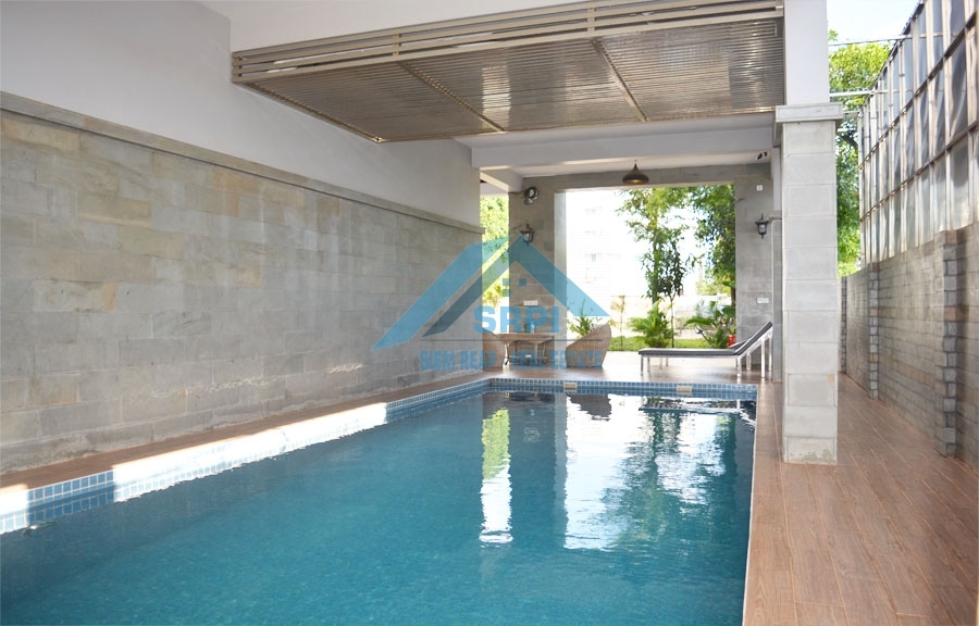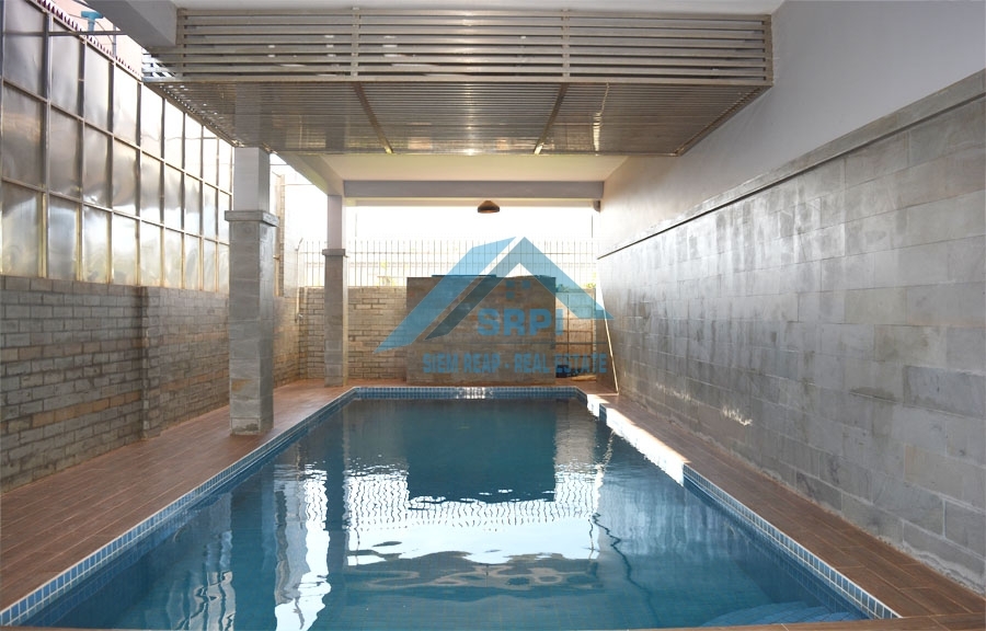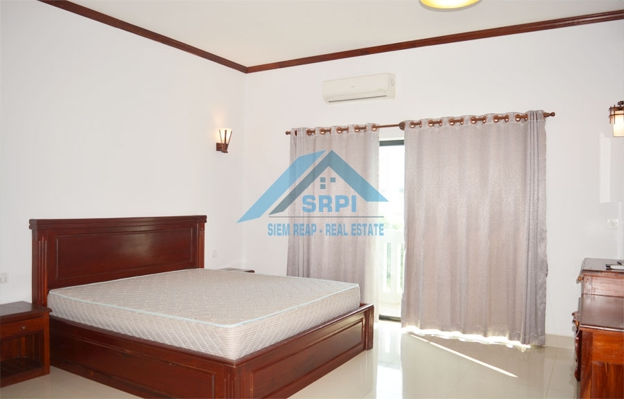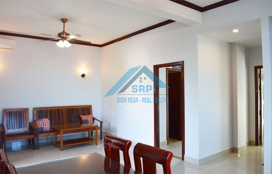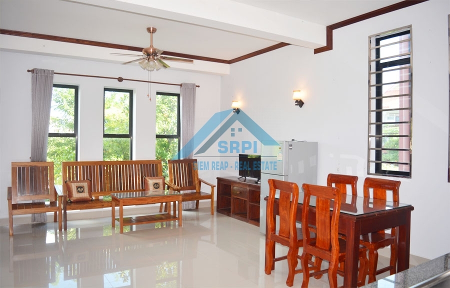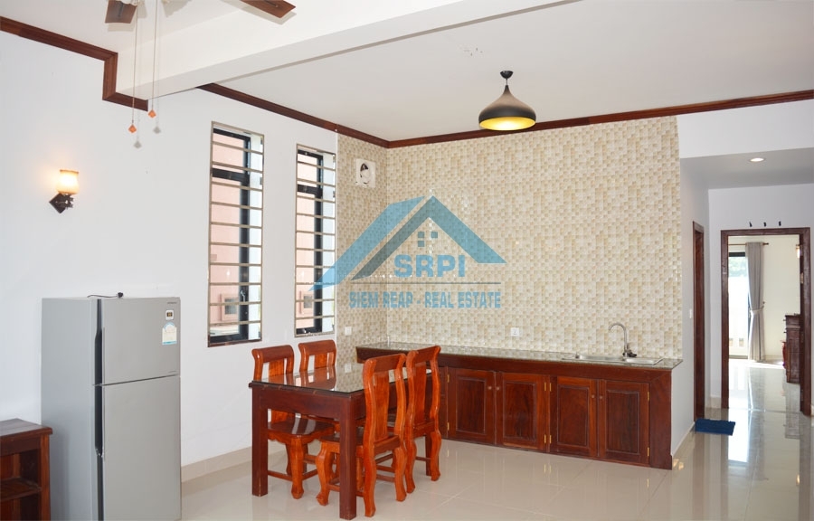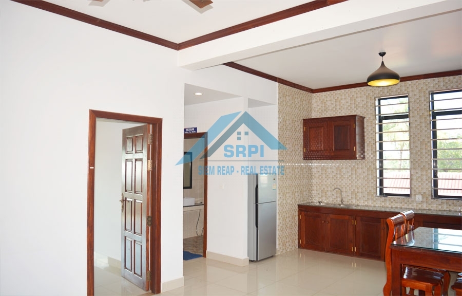 This is marvelous 12 – bedroom apartment block becomes available for rent location in Sangkat Svay Dangkum, Seim Reap Town, Cambodia. This beautiful property provides with high quality fully furnished, stunning swimming pool, leafy tropical garden and parking space. There are 04 units of 1 – Bedroom and 4 units of 2 – bedroom. Every bedroom is suite and equipped with a fitted wardrobe, a bedside table, flat screen TV and an en-suite bathroom with hot water. In addition, the living room featured of sofa set with air-conditioning and a flat screen TV. On top of that, the kitchen is big and comes complete with an ample space for cooking, refrigerator, washing machine, gas stove set with gas tank and comfortable dining table set. The surrounding environment is secured and the road condition is GOOD.